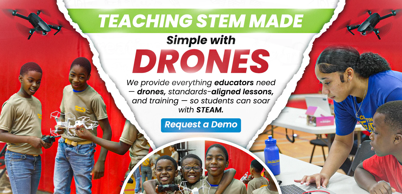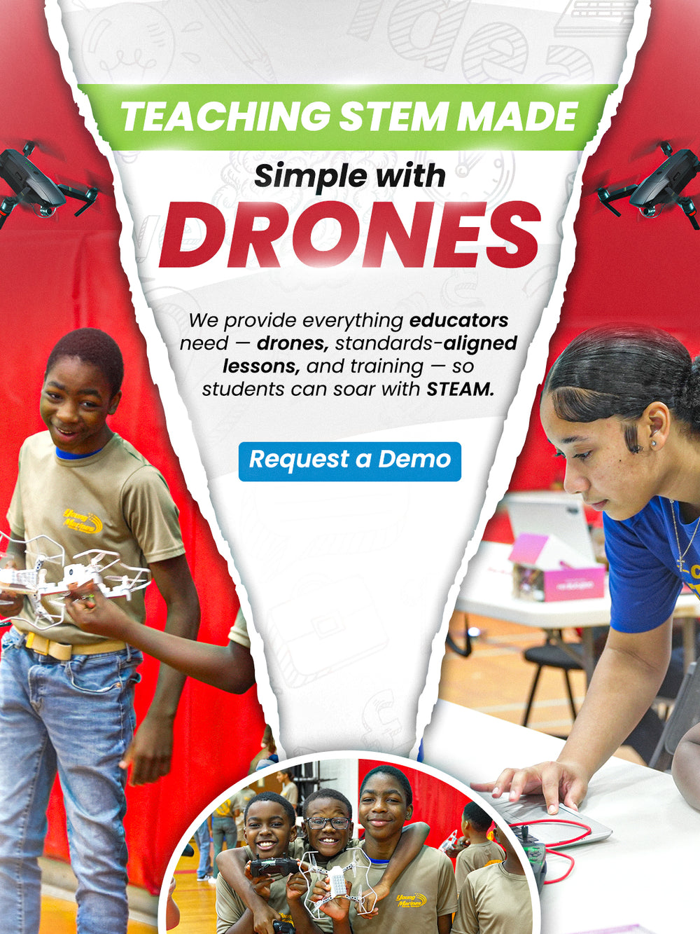 Take the guesswork out of teaching drones with our ready-to-teach, standards-aligned curriculum. Each program includes detailed lesson plans, student workbooks, and hands-on drone projects that align with STEM, CTE, and robotics standards. Whether you’re introducing basic flight skills or advanced coding concepts, our resources make drone learning engaging, accessible, and easy to implement for every grade level.